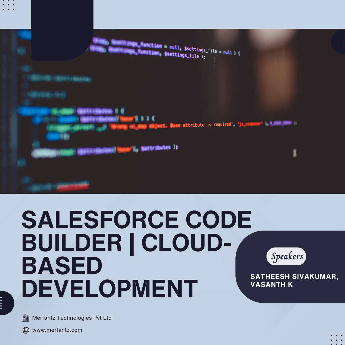 The session was led by Satheesh Sivakumar, who explained the features and capabilities of Code Builder, highlighting how it simplifies development by providing a ready-to-use, browser-based IDE. The discussion focused on setting up Code Builder, integrating it with Salesforce orgs, and leveraging its tools to improve developer productivity.